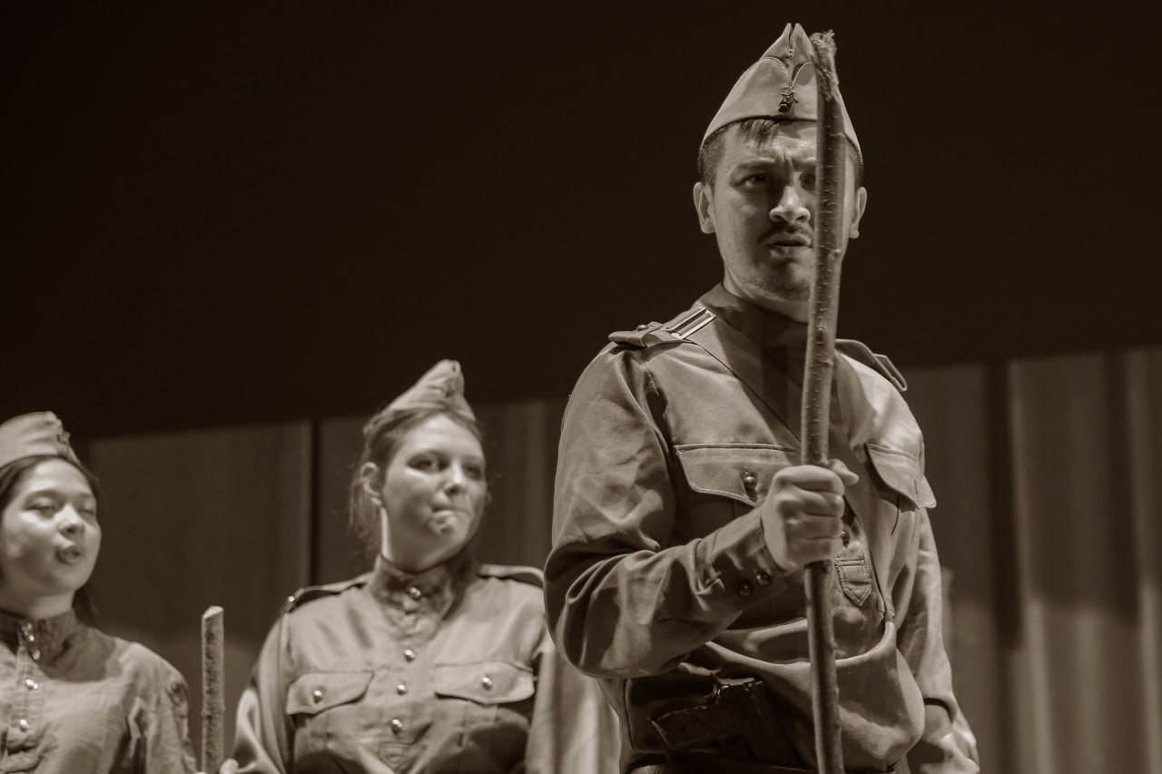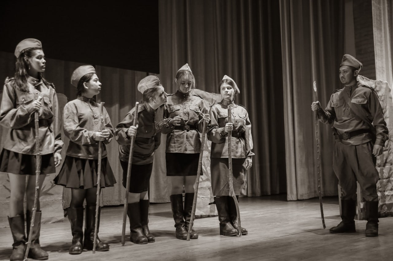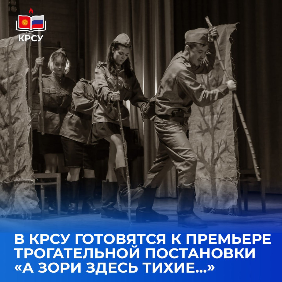 В актовом зале КРСУ царит особенная атмосфера: студенты погружены в последние репетиции спектакля «А зори здесь тихие…», посвященного 80-летию Победы.