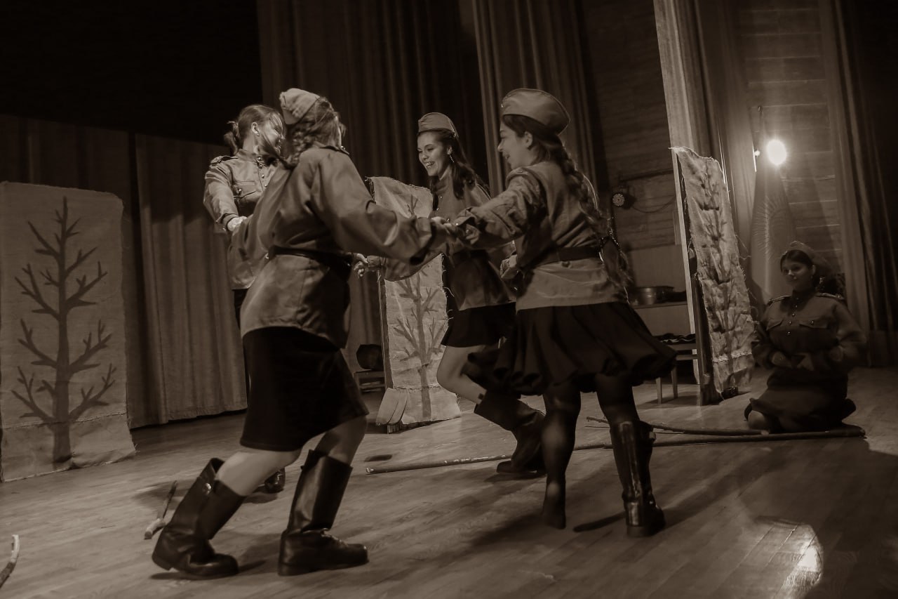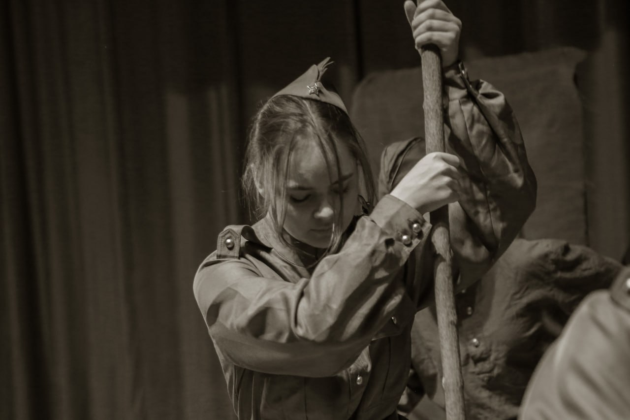 Уже через несколько недель публика увидит их проникновенную и душевную игру, полную горечи, силы духа и светлой памяти. Сцена оживает: звенят голоса, звучат военные марши, мелькают силуэты в форме. Взгляды актеров горят, в них — трагедия войны, мужество солдат, непоколебимая вера. Репетиции идут до позднего вечера, ведь впереди — долгожданная премьера.