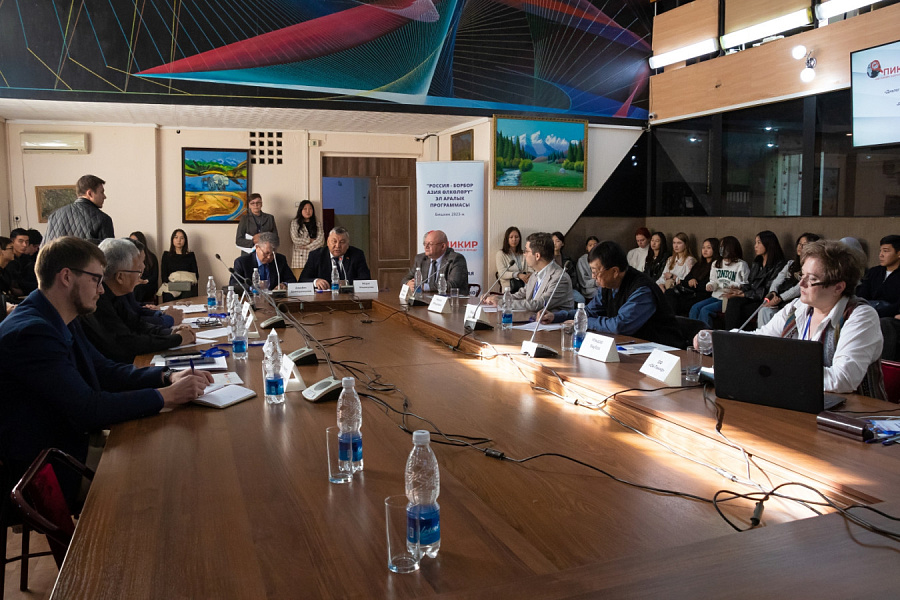 В работе круглого стола приняли участие секретарь Совета безопасности КР М. Иманкулов, представители Фонда Горчакова, эксперты, сотрудники КРСУ и студенты факультета международных отношений.