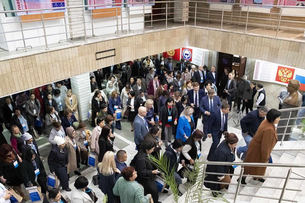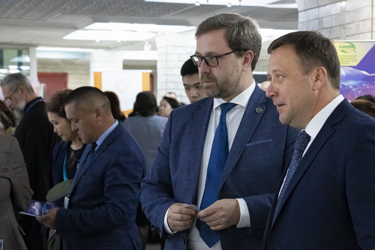 Перед многочисленными посетителями – участниками и делегатами II Форума директоров КР, представителями образовательных организаций, будущими абитуриентами и их родителями – с приветственным словом выступили заместитель руководителя Россотрудничества Павел Шевцов, и.о. ректора Кыргызско-Российского Славянского университета Денис Фомин-Нилов, председатель Координационного совета российских соотечественников Кыргызстана Ольга Фролова.