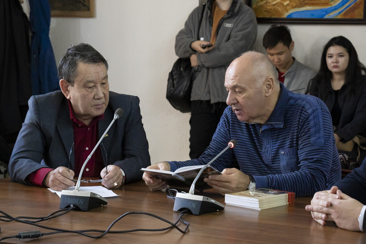 В презентации приняли участие сотрудники КРСУ – проректор по информационной политике Федор Турыгин, советник ректора по вопросам историко-культурного наследия Леонид Сумароков, председатель Кыргызского общества блокадников Ленинграда Марат Кутанов, преподаватели и студенты КРСУ.