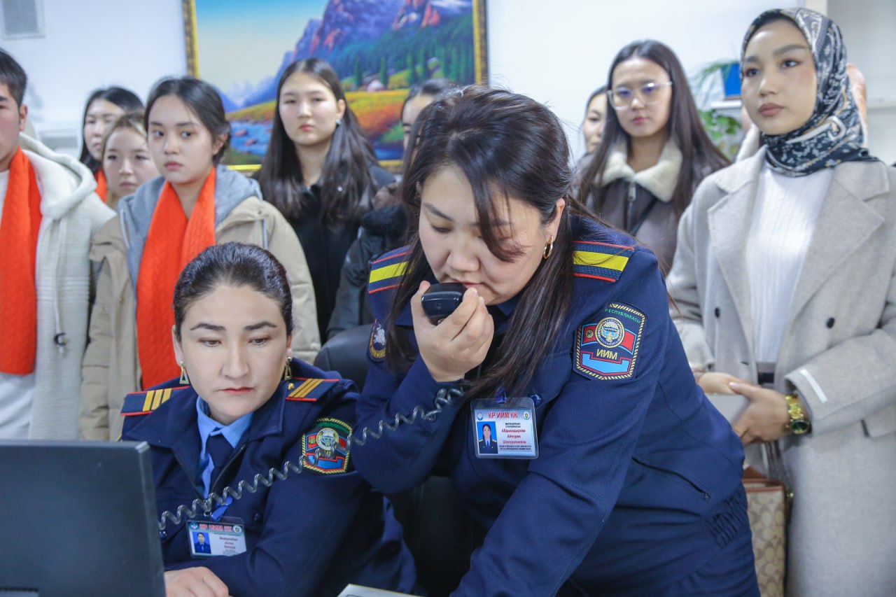 После лекции для участников провели экскурсию на пульт охраны МВД. Студенты смогли увидеть, как работает современная система обеспечения безопасности, узнать о применении новых технологий в охране правопорядка и задать вопросы сотрудникам службы.
