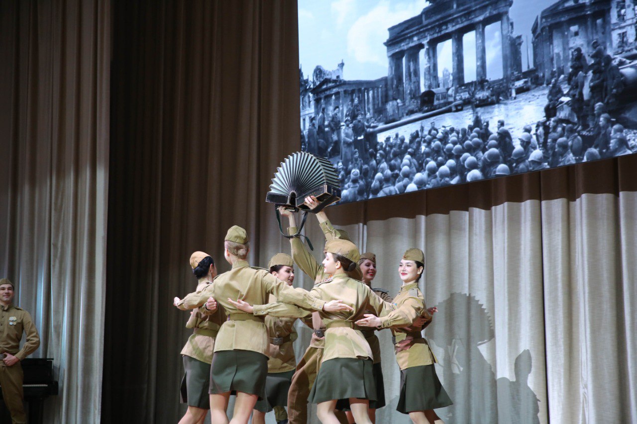 Концерт был приурочен к празднованию 80-годовщины со Дня Победы, и каждый момент был пропитан уважением к памяти героев, отдавших свои жизни за мир. Музыка, песни и танцы перенесли всех в атмосферу того времени, напомнив о важности памяти и благодарности за мирное небо над головой.