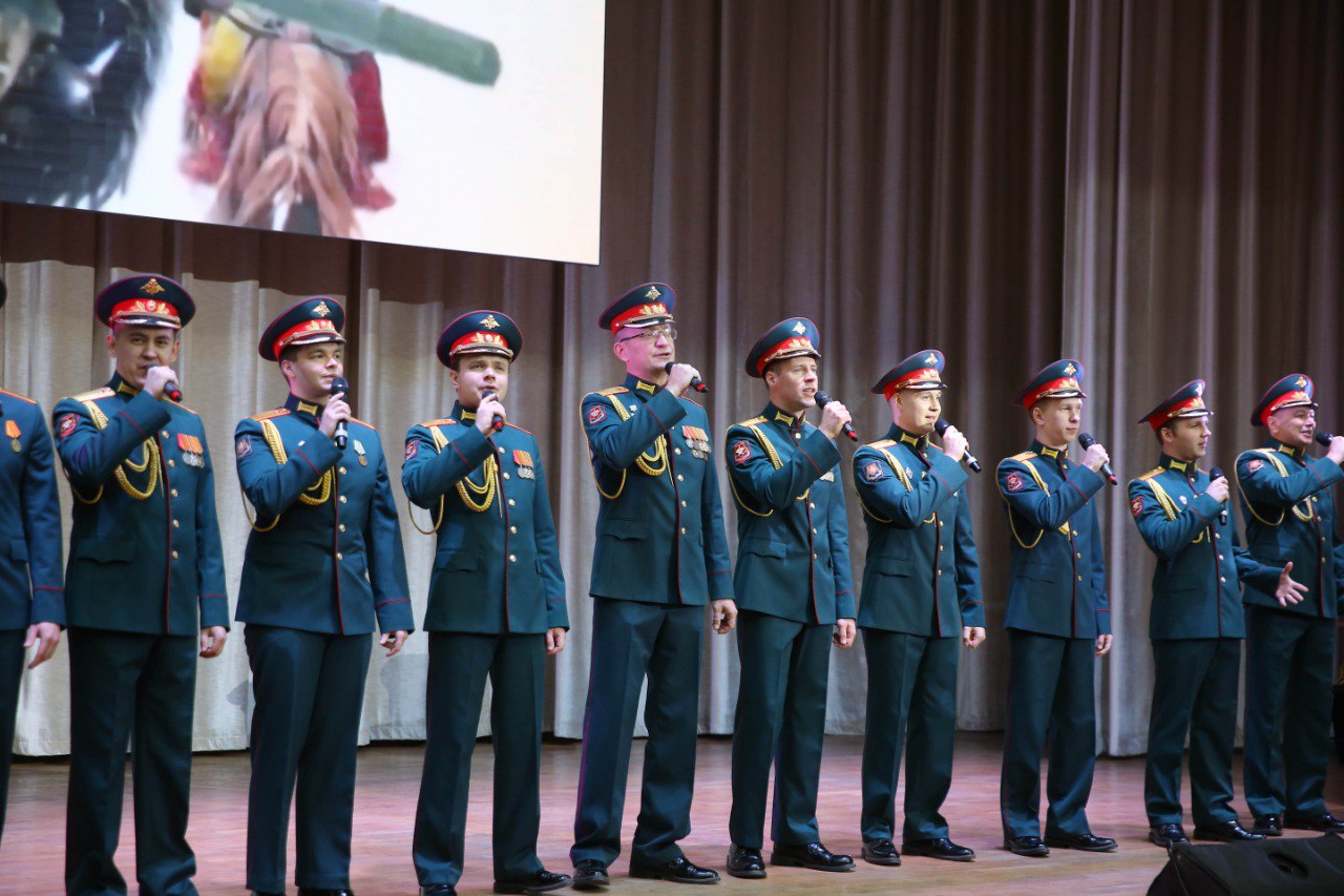 Сегодня, 26 марта, в Большом актовом зале Кыргызско-Российского Славянского университета им. Б.Н. Ельцина состоялся невероятно душевный концерт. На сцене выступил Ансамбль песни и пляски Центрального военного округа Министерства обороны России. Музыканты и артисты подарили зрителям незабываемое впечатление, исполнив композиции, которые прониклись духом Великой Отечественной войны.