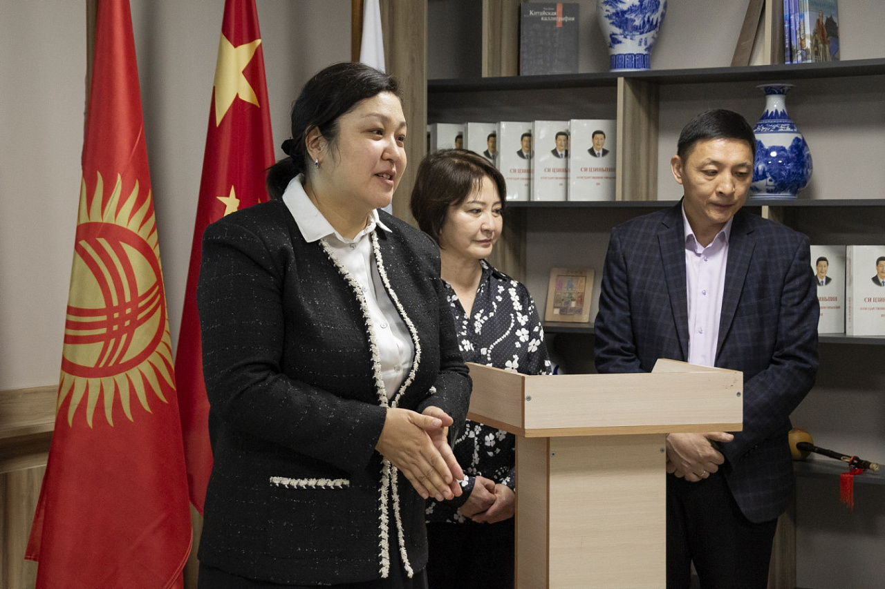 Чрезвычайный и Полномочный Посол КНР в КР г-жа Ду Дэвэнь выразила надежду, что обновленный Центр станет площадкой для молодежи, изучающих китайский язык и культуру, внесет большой вклад в укрепление дружбы между Китаем и Кыргызстаном. Высокая гостья передала в дар Центру книги и памятную скульптуру, символизирующую сближение культур.
