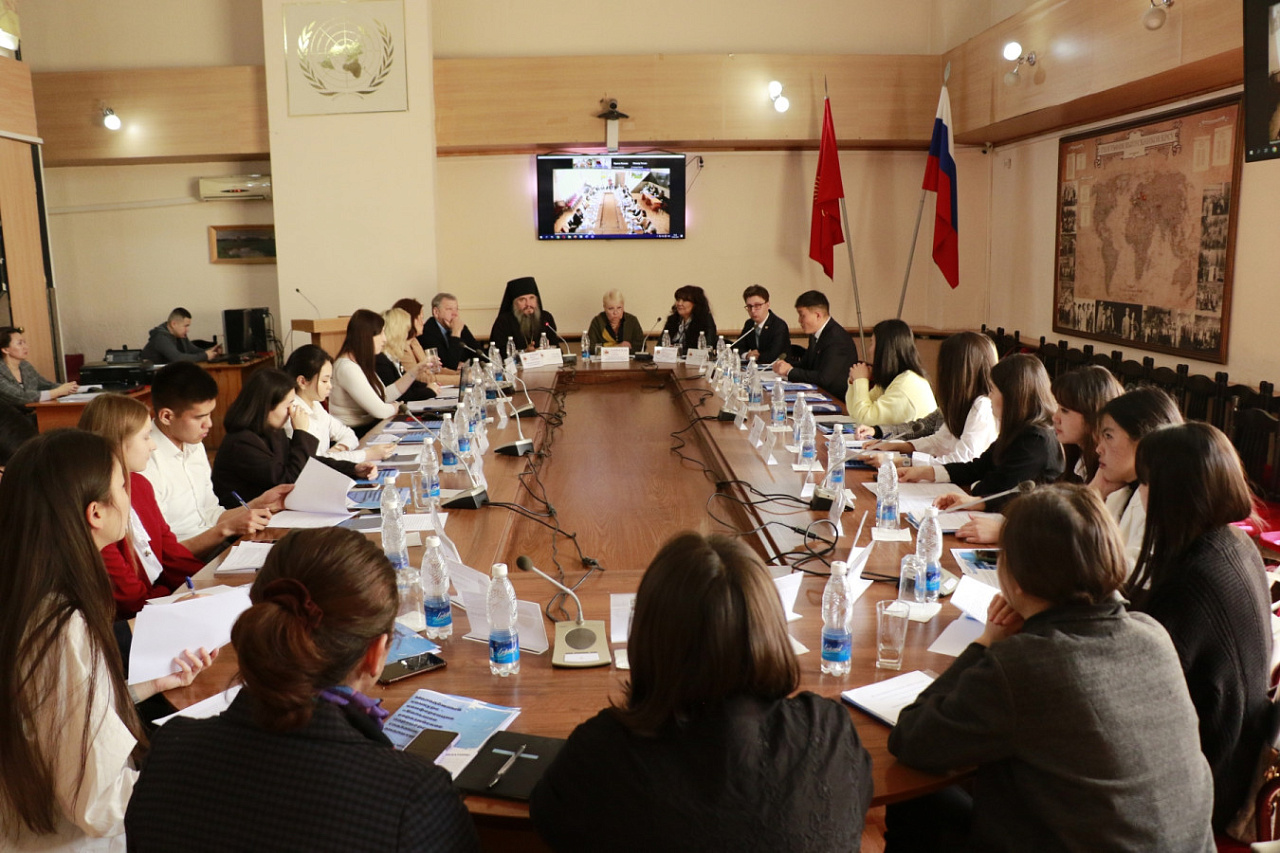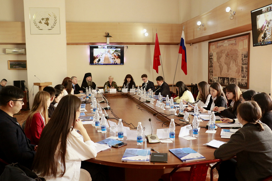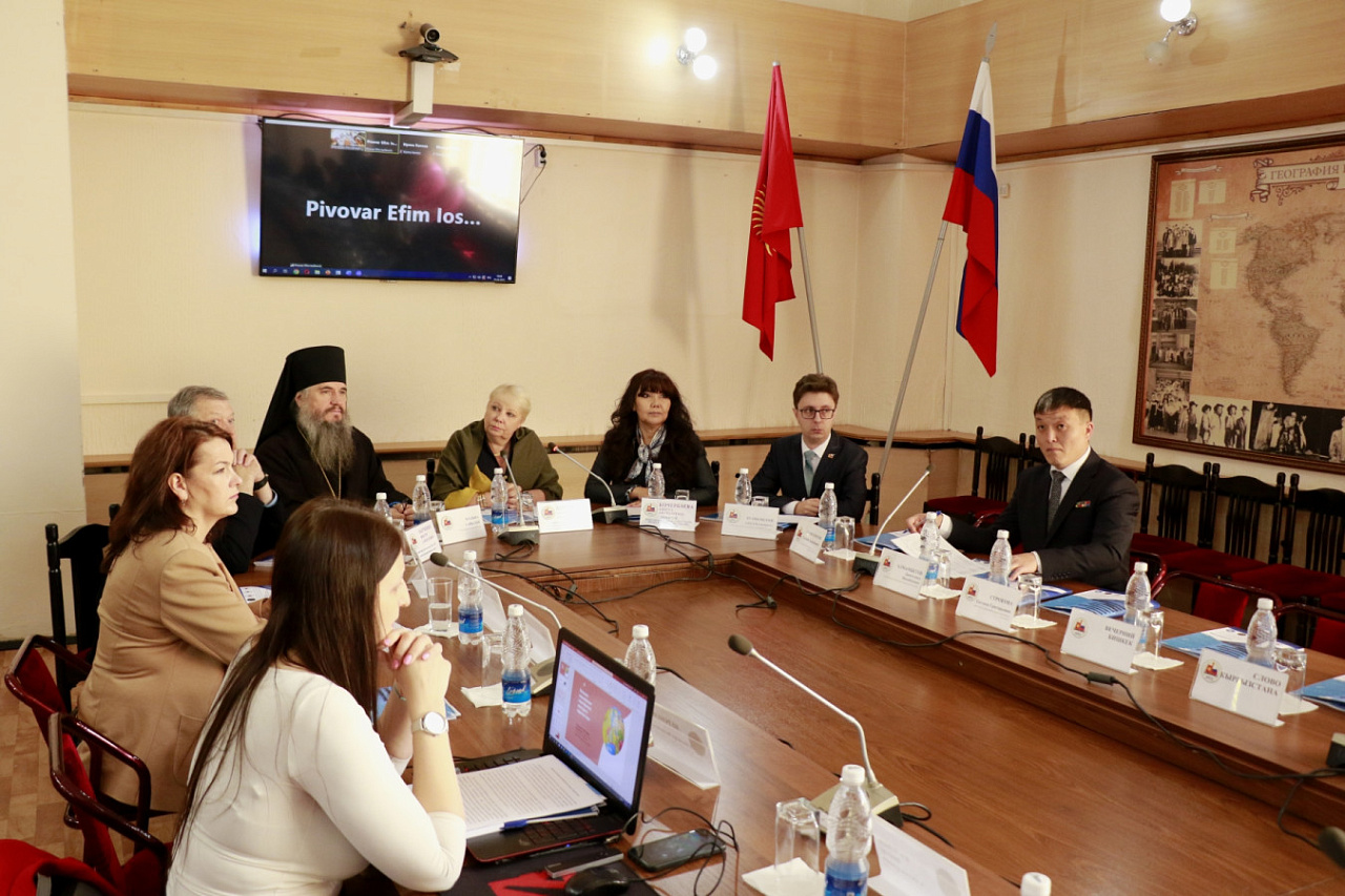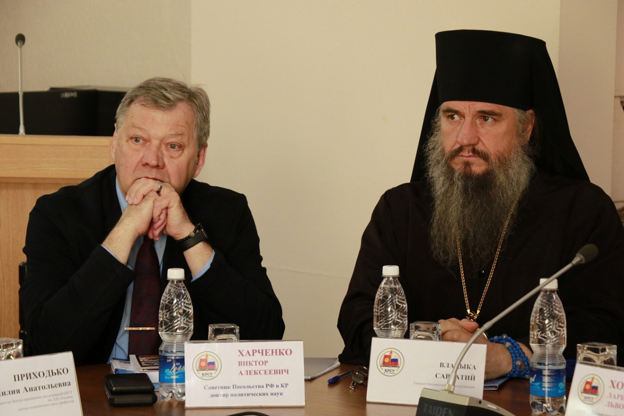 Организаторами мероприятия выступили Центр евразийских исследований Кыргызско-Российского Славянского университета им. Б. Ельцина и Международный аналитический клуб «Иссык-Куль – Большая Евразия». Модераторами выступили профессора КРСУ Лариса Хоперская и Айнура Кочербаева. Среди участников – декан ФМО, доцент Алексей Куликовский, представитель ЖК КР Булат Дюшалиев, епископ Бишкекский и Кыргызстанский Владыка Савватий, советник Посольства РФ в КР Виктор Харченко и мн. др.