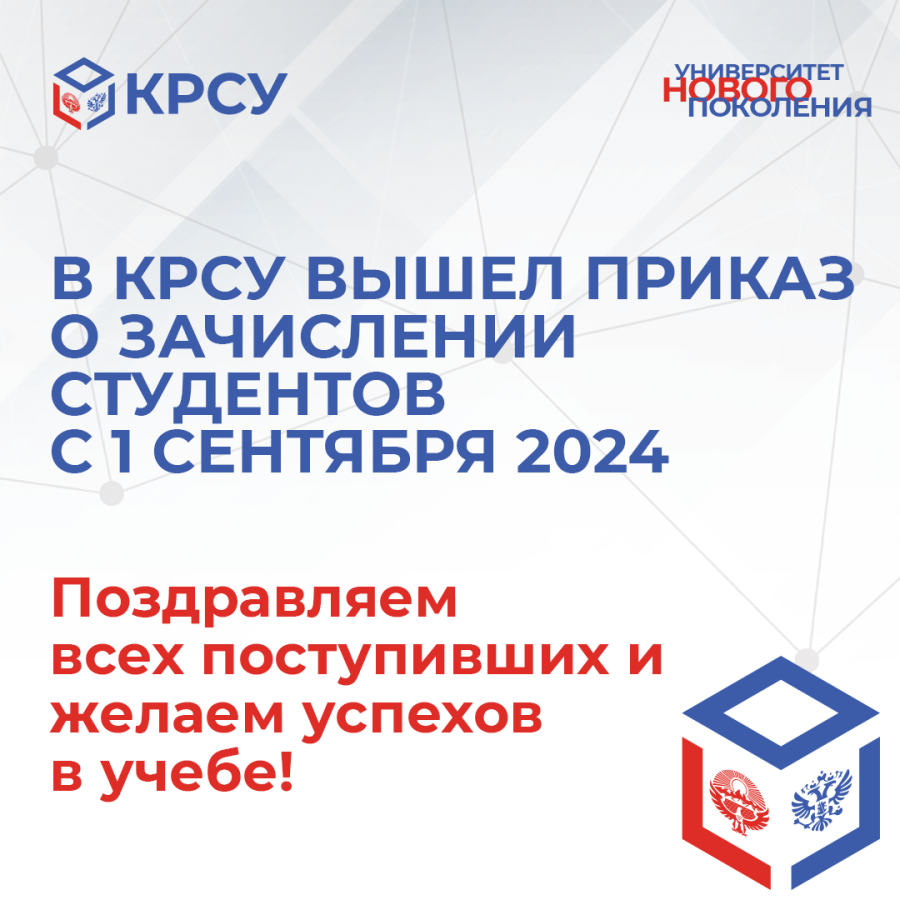 Рады сообщить, что в КРСУ вышел приказ о зачислении студентов на бюджетные места, финансируемые Российской Федерацией, с 1 сентября 2024 года. Вы можете ознакомиться со списком зачисленных студентов по этой ссылке.