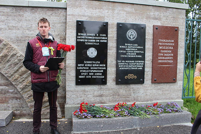 Руководитель движения «Волонтеры Победы» Кыргызско-Российского Славянского университета Насиба Эшмурадова приняла участие в памятных мероприятиях по случаю 80-летия начала блокады Ленинграда. Акция памяти проходила в период с 6 по 9 сентября 2021 года в Санкт-Петербурге. В ней участвовали делегации из Кыргызстана и Казахстана, в состав которых вошли волонтеры, поисковики, потомки тех, кто защищал Ленинград в годы Великой Отечественной войны.