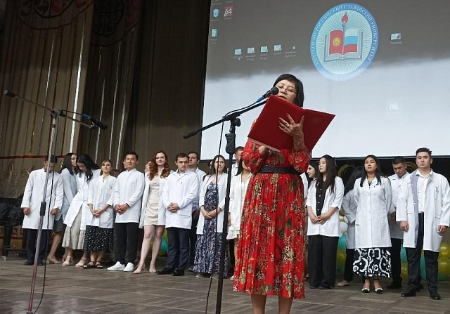 Концерт прошел на ура: выступали сами выпускники, студенты разных курсов, а также детский танцевальный ансамбль «Таберик». Завершился выпускной принятием клятвы врача Кыргызской Республики и Российской Федерации.