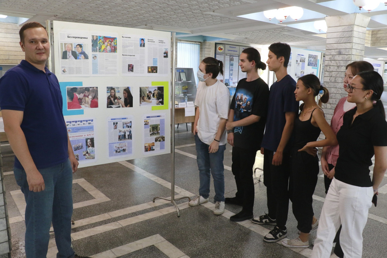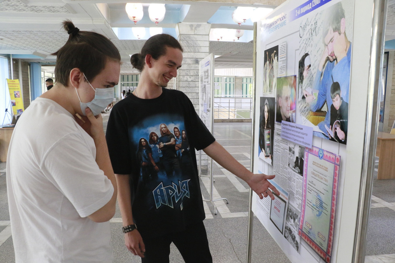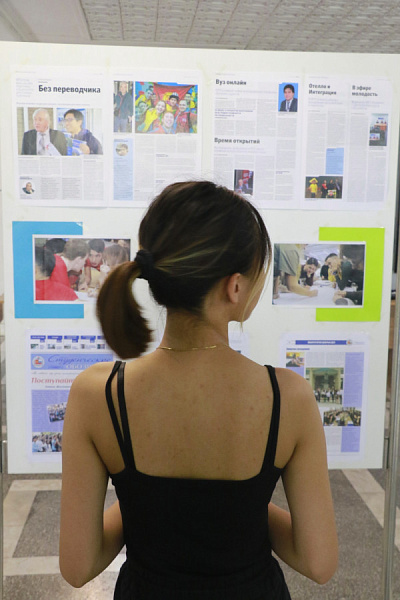 В честь знаменательного события в фойе на втором этаже главного корпуса КРСУ развернулась фотовыставка, посвященная истории трансформации «Студенческого обозрения» – от формата А4, газетной бумаги и скромного тиража до профессионального периодического издания в цвете, над которым работают как опытные, так и начинающие журналисты.