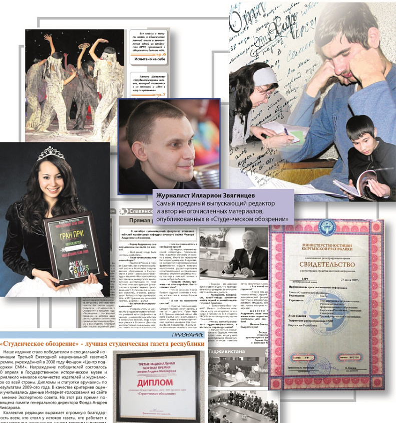 В эти дни газета «Студенческое обозрение» КРСУ отмечает 25-летие с момента выхода в свет первого номера и 15-летие с момента официальной регистрации в Министерстве юстиции республики как СМИ.