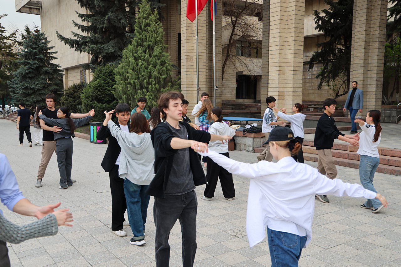 В Кыргызско-Российском Славянском университете прошла первая репетиция участников «Вальса Победы» — масштабного патриотического проекта, приуроченного к 81-летию Победы в Великой Отечественной войне.