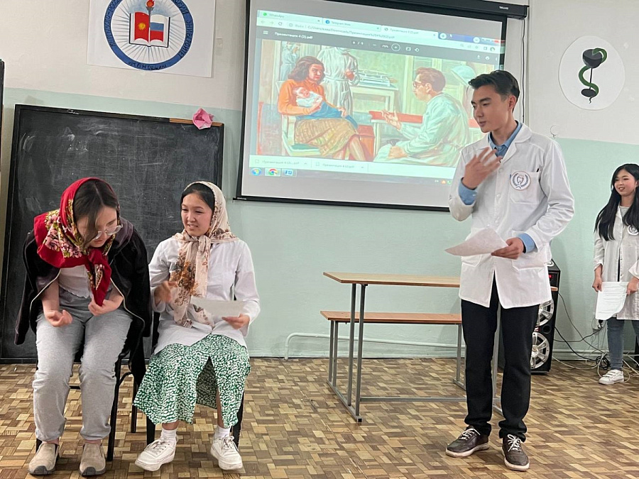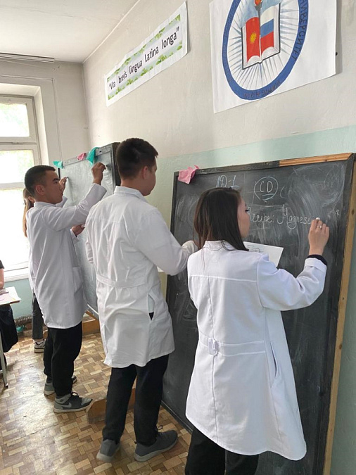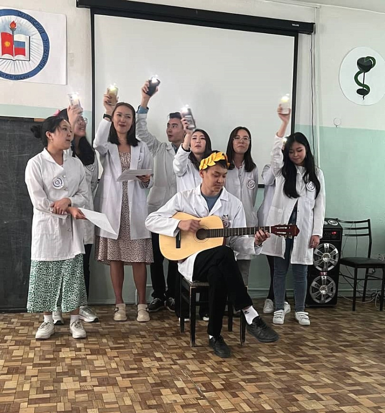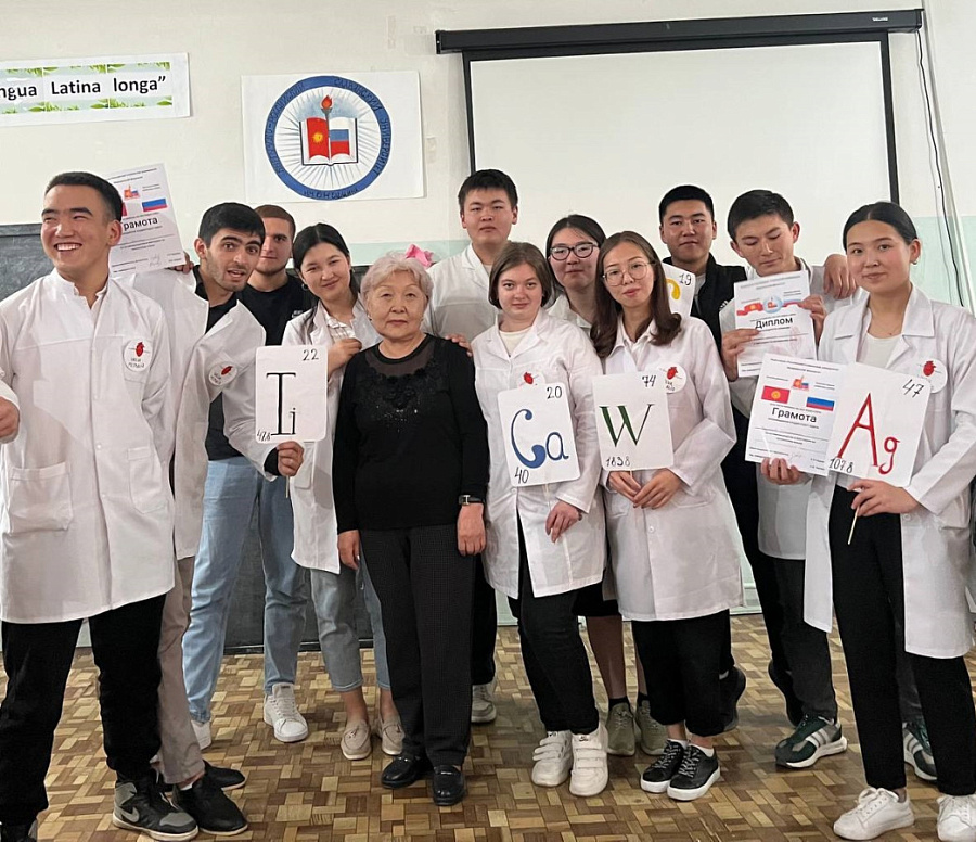 Состав жюри: старший куратор медицинского факультета Т. Кожинова, ст. преподаватель латинского языка кафедры ОЗиЗ Т. Шошева, ст. преподаватель Международной высшей школы медицины Ч. Кочкорбаева, ст. преподаватели кафедры ОЗиЗ Г. Ишенова и Р. Айталиева, преподаватель кафедры ОЗиЗ М. Дуванаева.