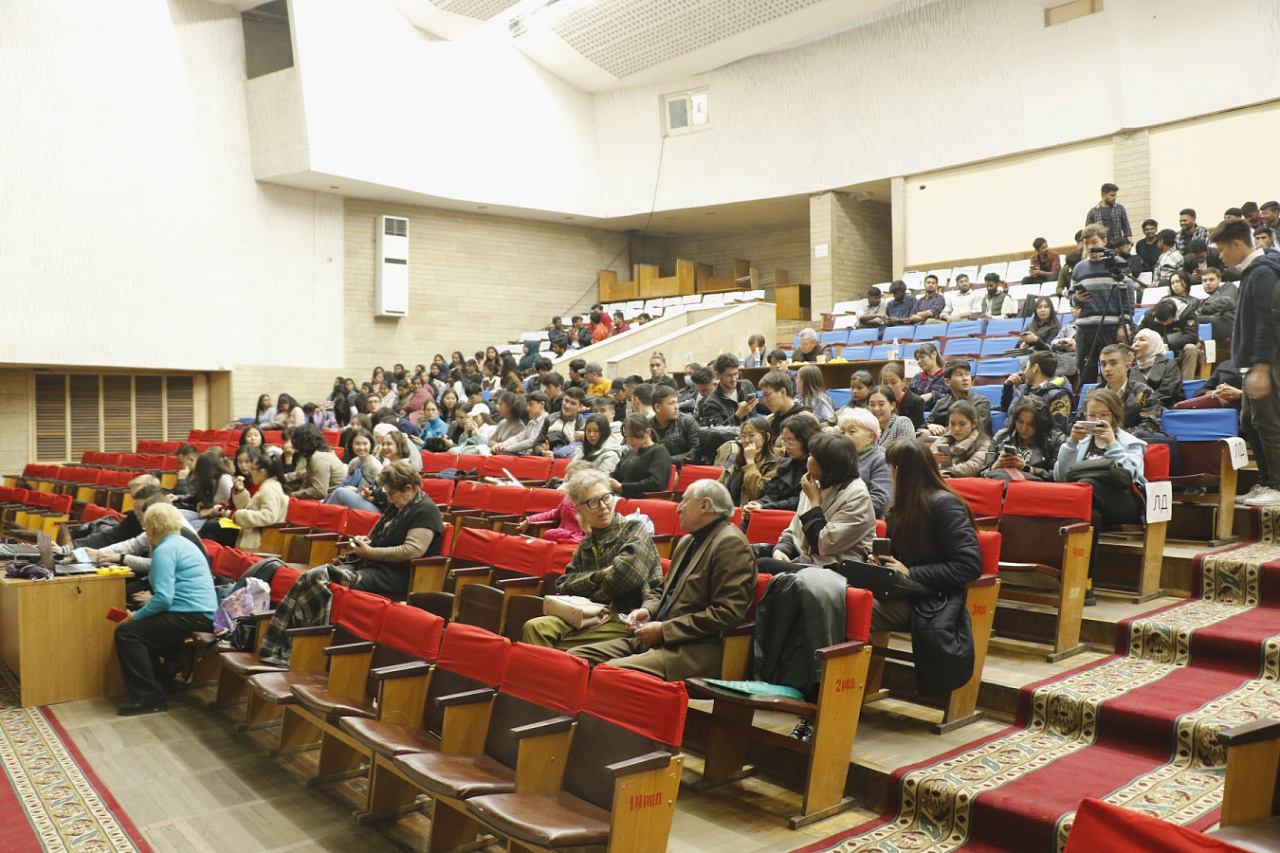 Вот и к этому дню будущие врачи, несмотря на свою традиционную загруженность учебой, отнеслись весьма серьезно, в чем им, опять же по традиции, поспособствовала ведущий сотрудник деканата Чинара Нагойбаева. Обычно академичный большой актовый зал был с утра празднично (по-Ноорузски) украшен, студенты и студентки радовали глаз своей молодостью, улыбками, красочными нарядами.