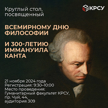 КРСУ проводит круглый стол, посвященный Всемирному дню философии и 300-летию Иммануила Канта 5 ноября 2024 Философия