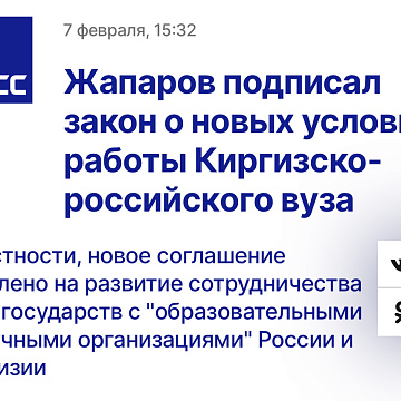 Студенты из Кыргызстана смогут полгода бесплатно учиться в российских вузах 16 апреля 2024 СМИ о КРСУ